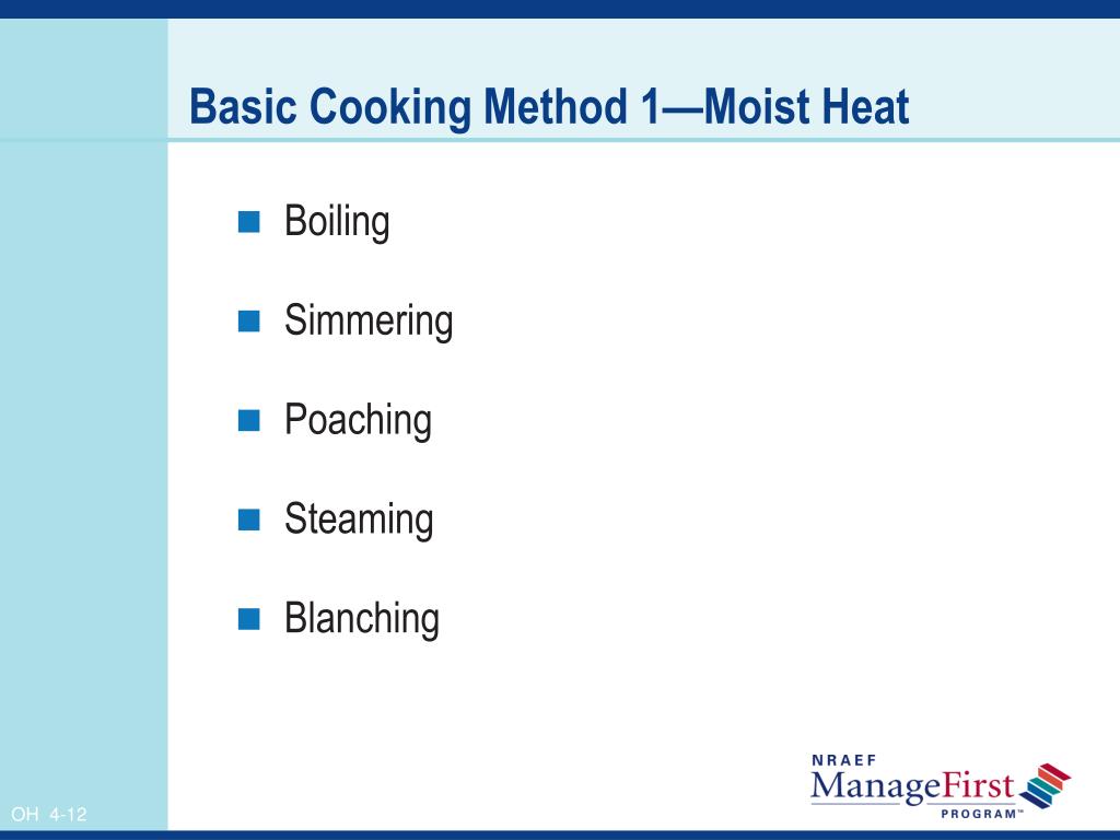 Basic Cooking Method 1—Moist Heat • Boiling • Simmering • Poaching • Steaming • Blanching
