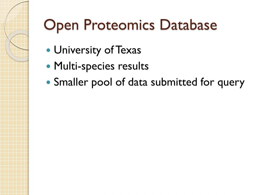 Open Proteomics Database • University of Texas • Multi-species results • Smaller pool of data submitted for query