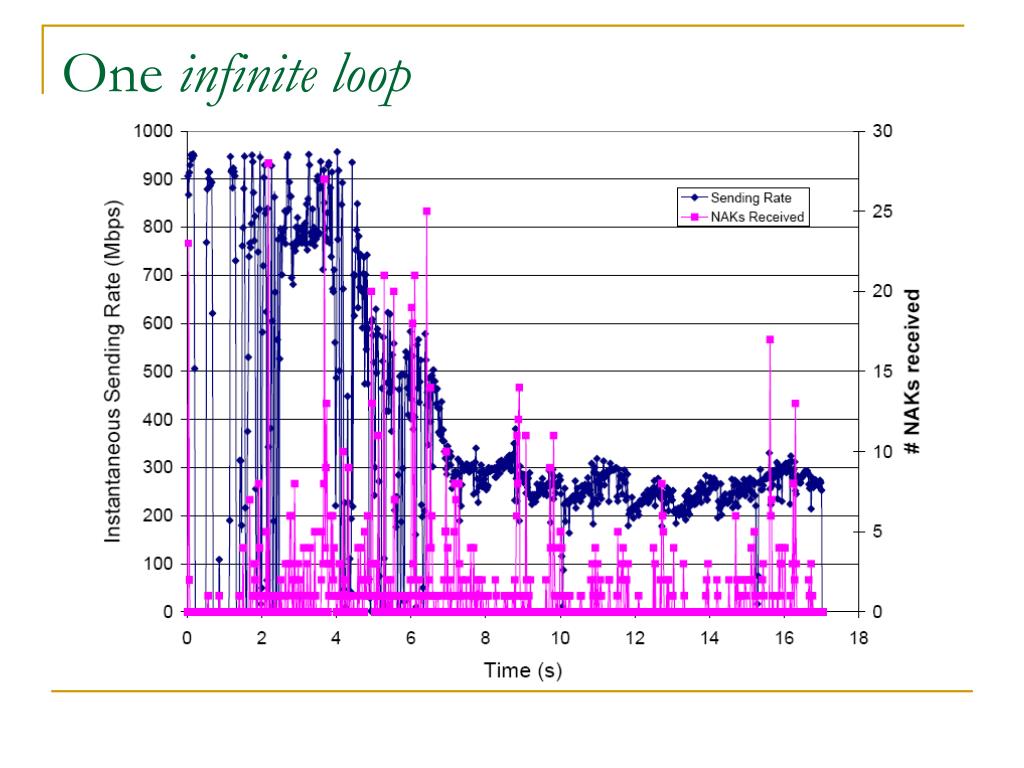 Experiments with UDT Idle System Pentium IV 3 GHz, 2 GB RAM 1 Gig E network, RAMDisk-RAMDisk Transfer One loop Two loops