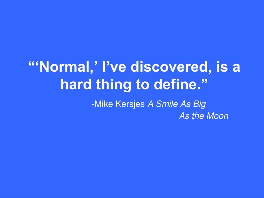 “‘Normal,’ I’ve discovered, is a hard thing to define.”-Mike Kersjes A Smile As Big As the Moon