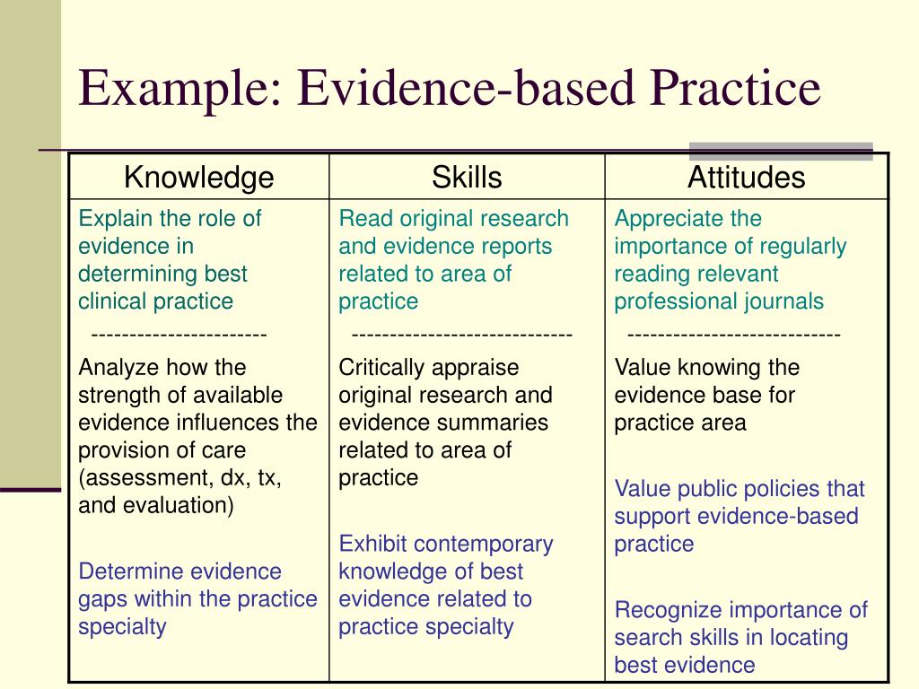 IOM/QSEN Competencies Cronenwett, Sherwood, Barnsteiner et al, 2007 • Evidence-based practice: Integrate best current evidence with clinical expertise and patient/family preferences and values for delivery of optimal health care • Quality improvement: Use data to monitor the outcomes of care processes and use improvement methods to design and test changes to continuously improve the quality and safety of health care systems