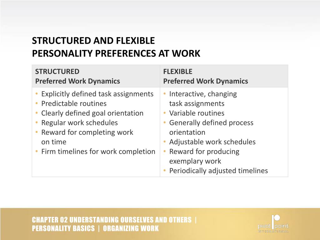Structured and Flexible Personality Preferences at Work Chapter 02 Understanding ourselves and others |personality basics | ORGANIZING WORK