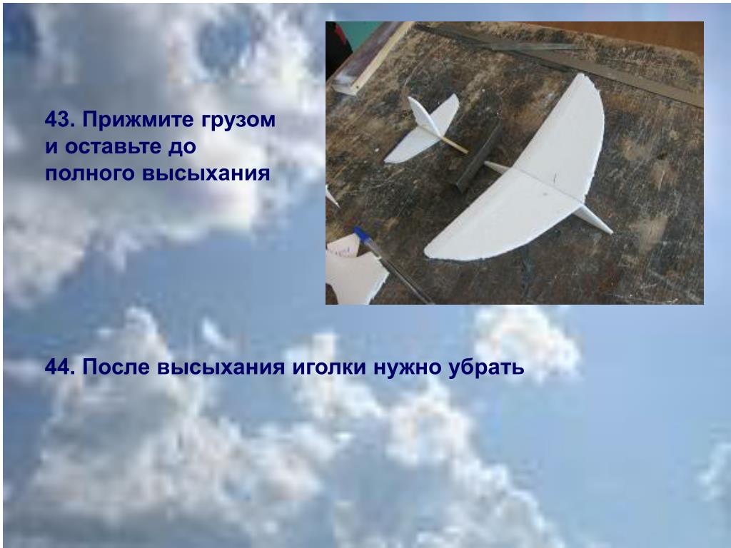 43. Прижмите грузом и оставьте до полного высыхания 44. После высыхания иголки нужно убрать