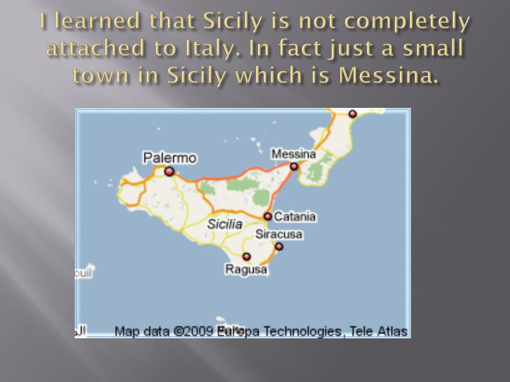 I learned that Sicily is not completely attached to Italy. In fact just a small town in Sicily which is Messina.