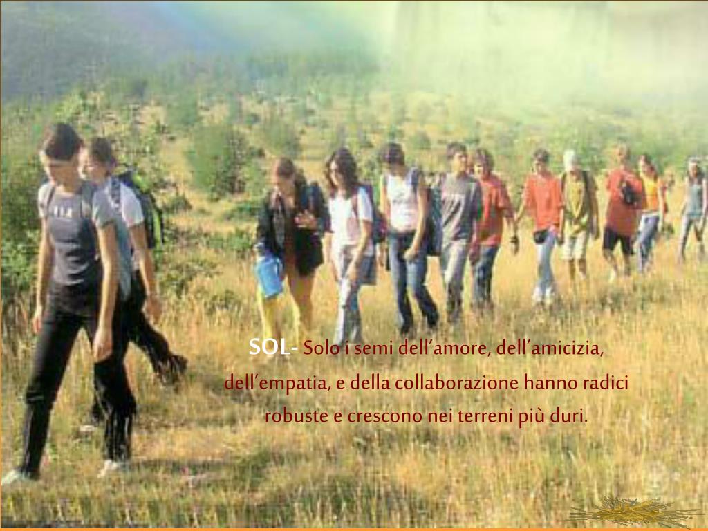SOL- Solo i semi dell’amore, dell’amicizia, dell’empatia, e della collaborazione hanno radici robuste e crescono nei terreni più duri.