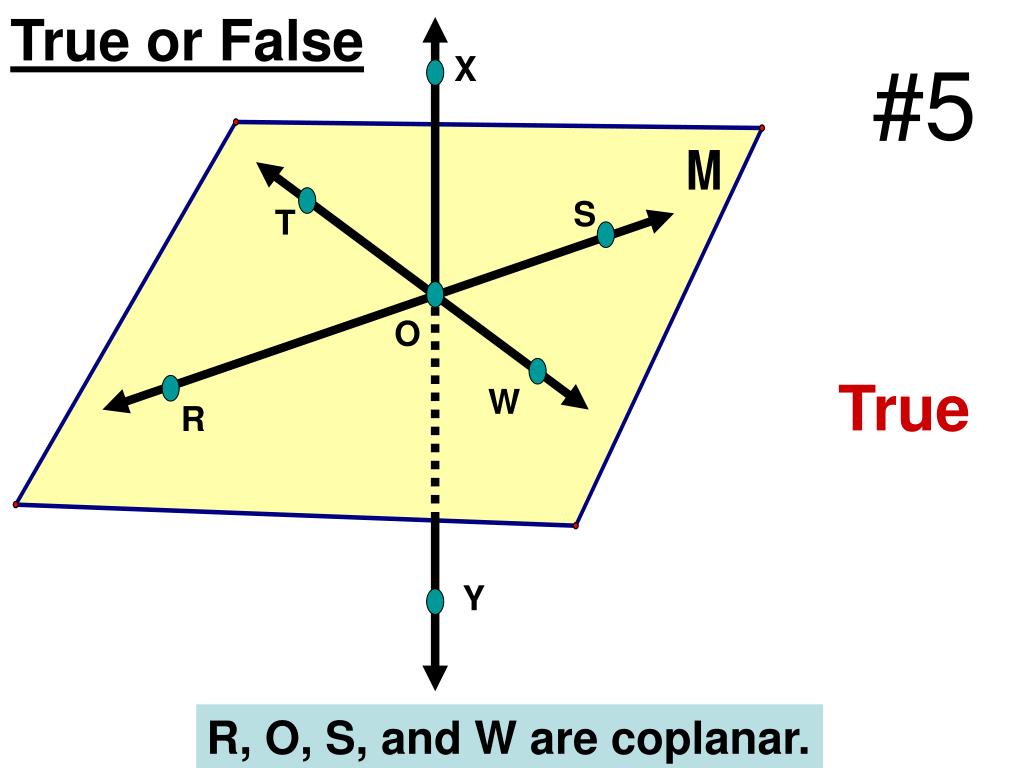 True or False X #5 S T O True W R Y R, O, S, and W are coplanar.