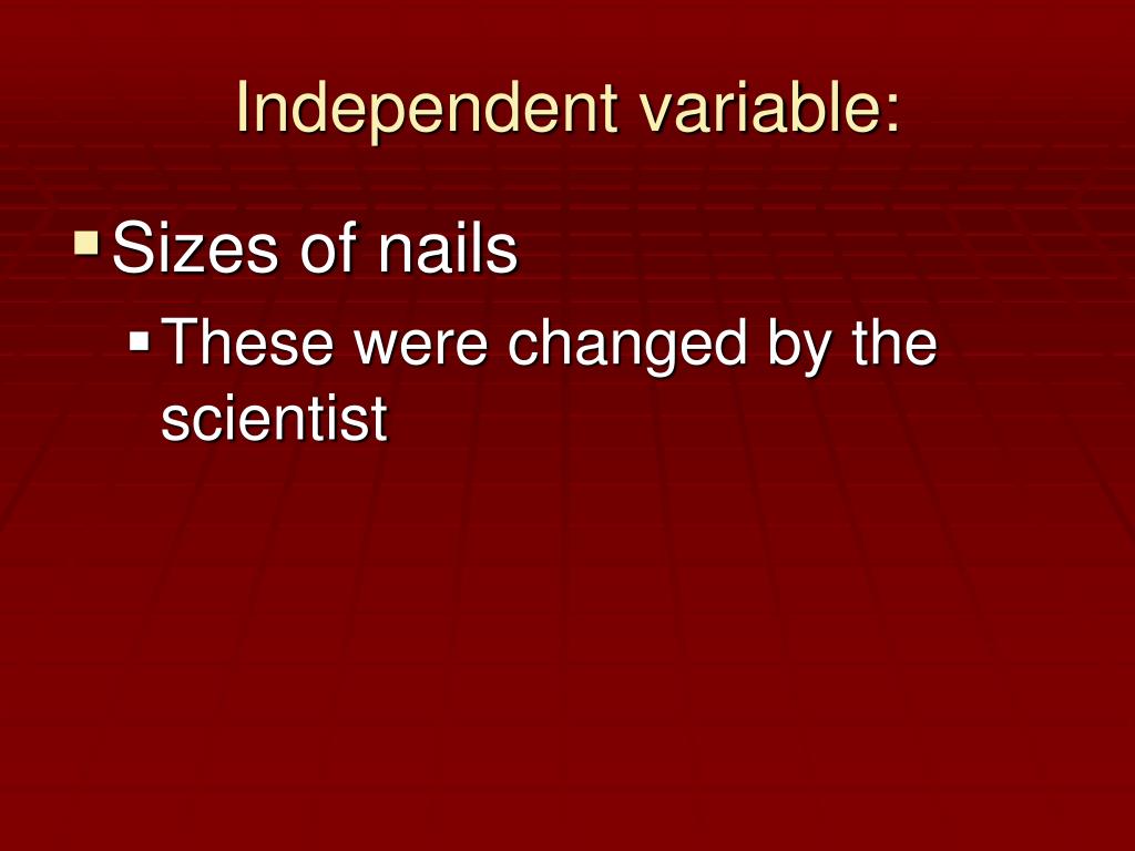 Independent variable: • Sizes of nails • These were changed by the scientist