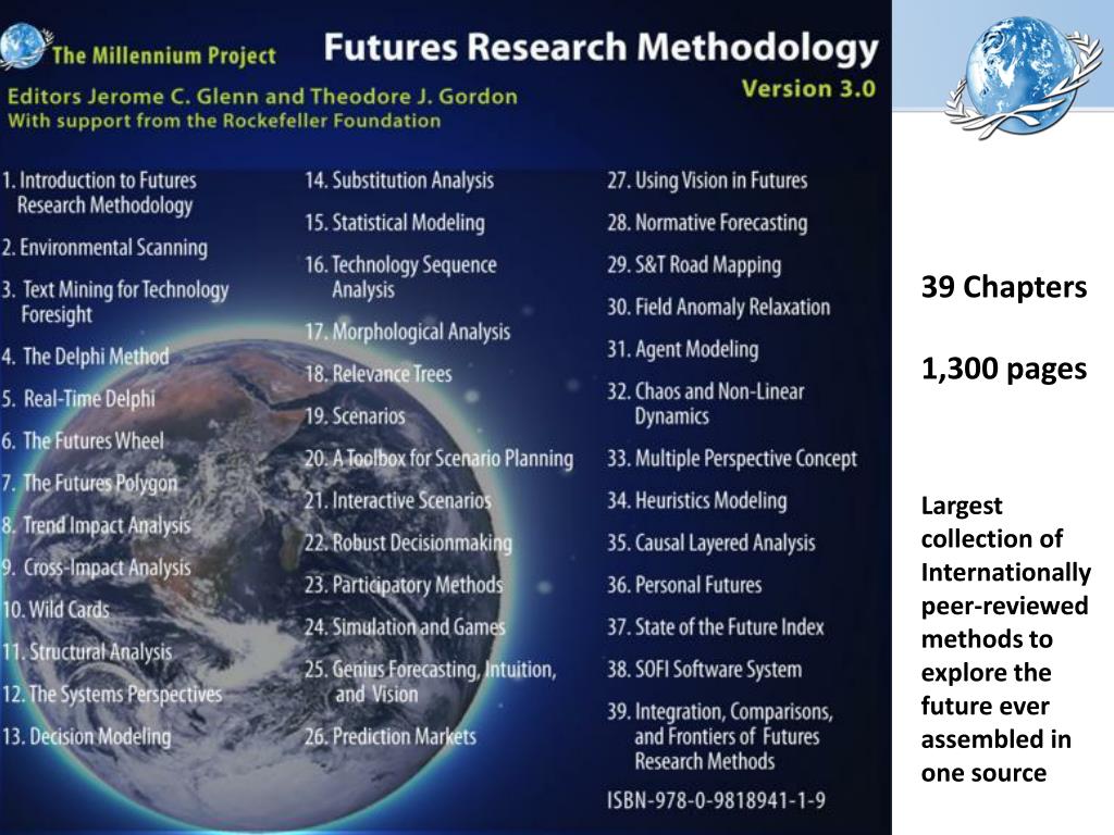 39 Chapters 1,300 pages Largest collection of Internationally peer-reviewed methods to explore the future ever assembled in one source