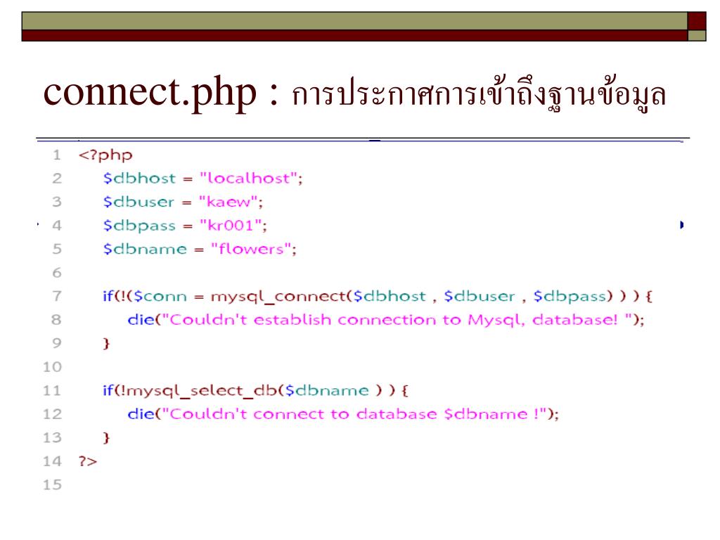 connect.php : การประกาศการเข้าถึงฐานข้อมูล