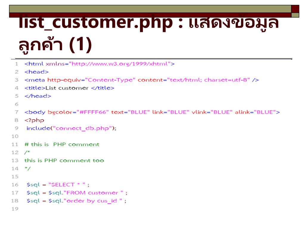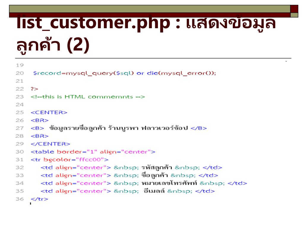 list_customer.php : แสดงข้อมูลลูกค้า (1)