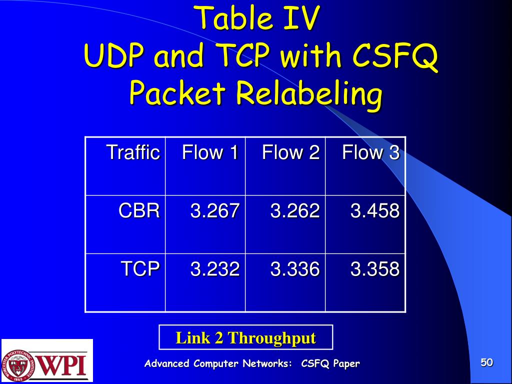 Table IV UDP and TCP with CSFQ Packet Relabeling Link 2 Throughput Advanced Computer Networks: CSFQ Paper