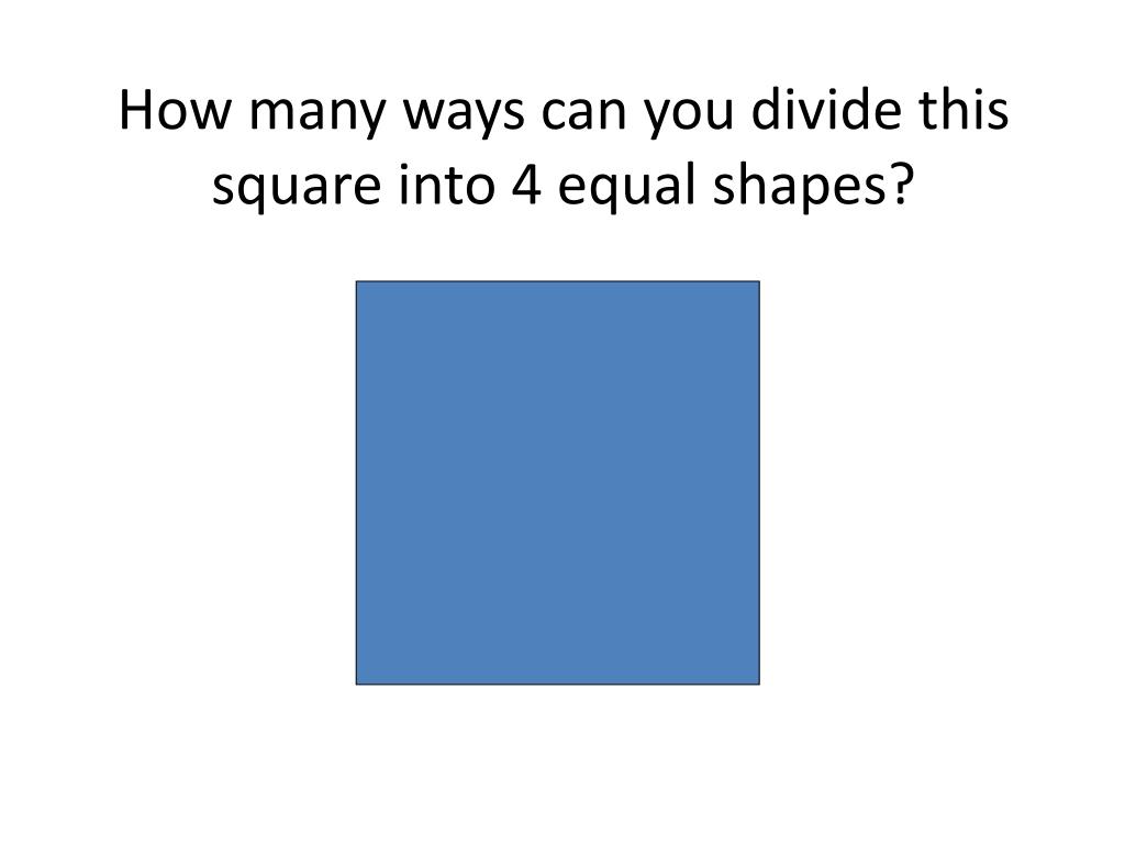 How many ways can you divide this square into 4 equal shapes?Like this for instance.