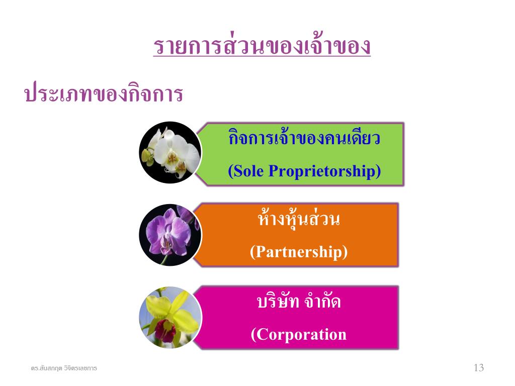 รายการส่วนของเจ้าของ ประเภทของกิจการ