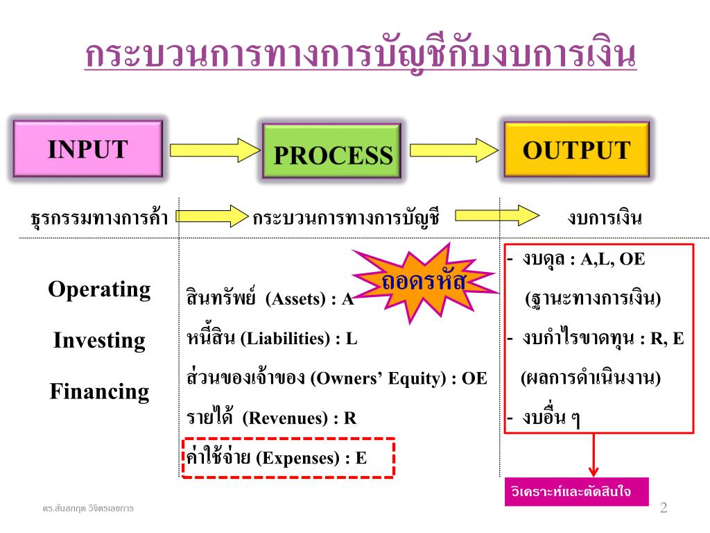 กระบวนการทางการบัญชีกับงบการเงินกระบวนการทางการบัญชีกับงบการเงิน INPUT OUTPUT PROCESS ถอดรหัส วิเคราะห์และตัดสินใจ