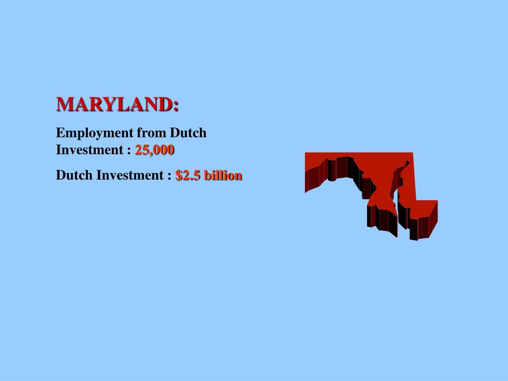 MARYLAND: Employment from Dutch Investment : 25,000 Dutch Investment : $2.5 billion
