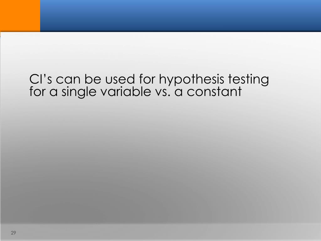 CI’s can be used for hypothesis testing for a single variable vs. a constant
