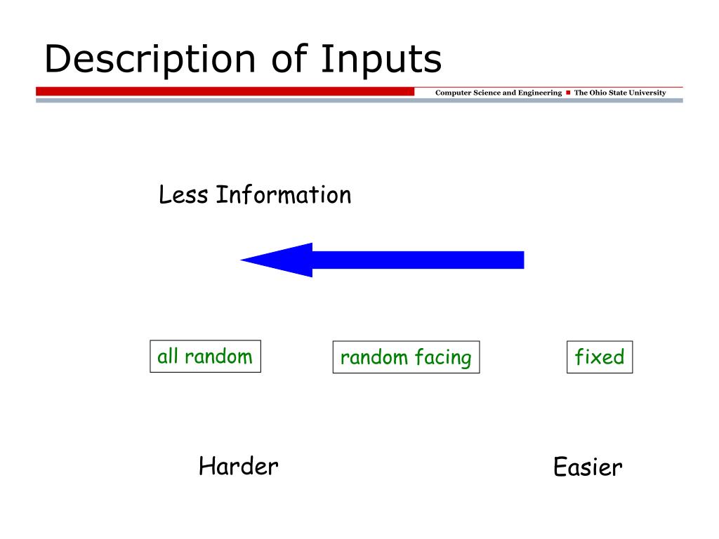 Description of Inputs Less Information all random random facing fixed Harder Easier