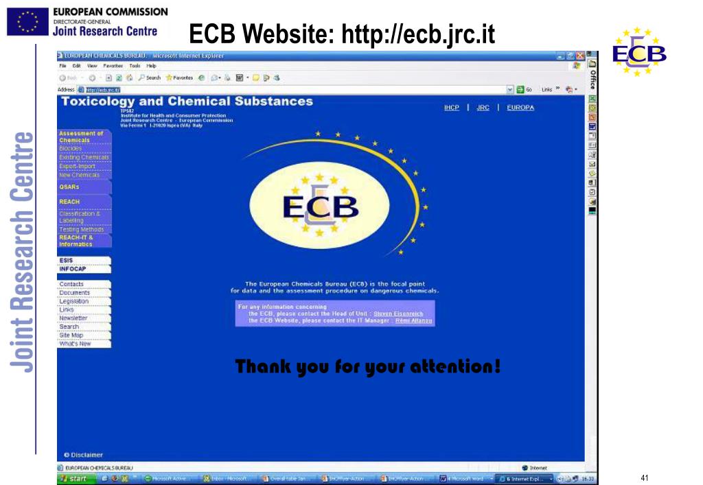 ECB Website: http://ecb.jrc.it Thank you for your attention!