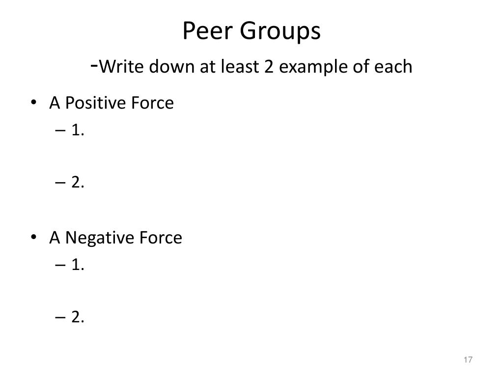 Peer Groups-Write down at least 2 example of each • A Positive Force • 1. • 2. • A Negative Force • 1. • 2.
