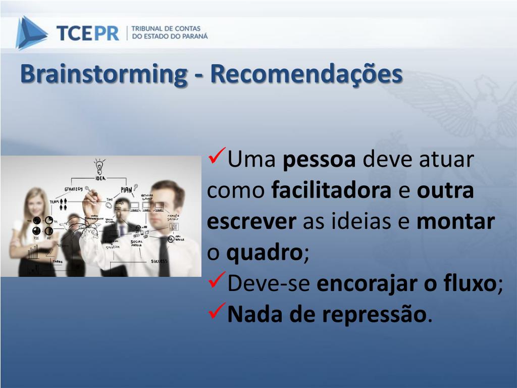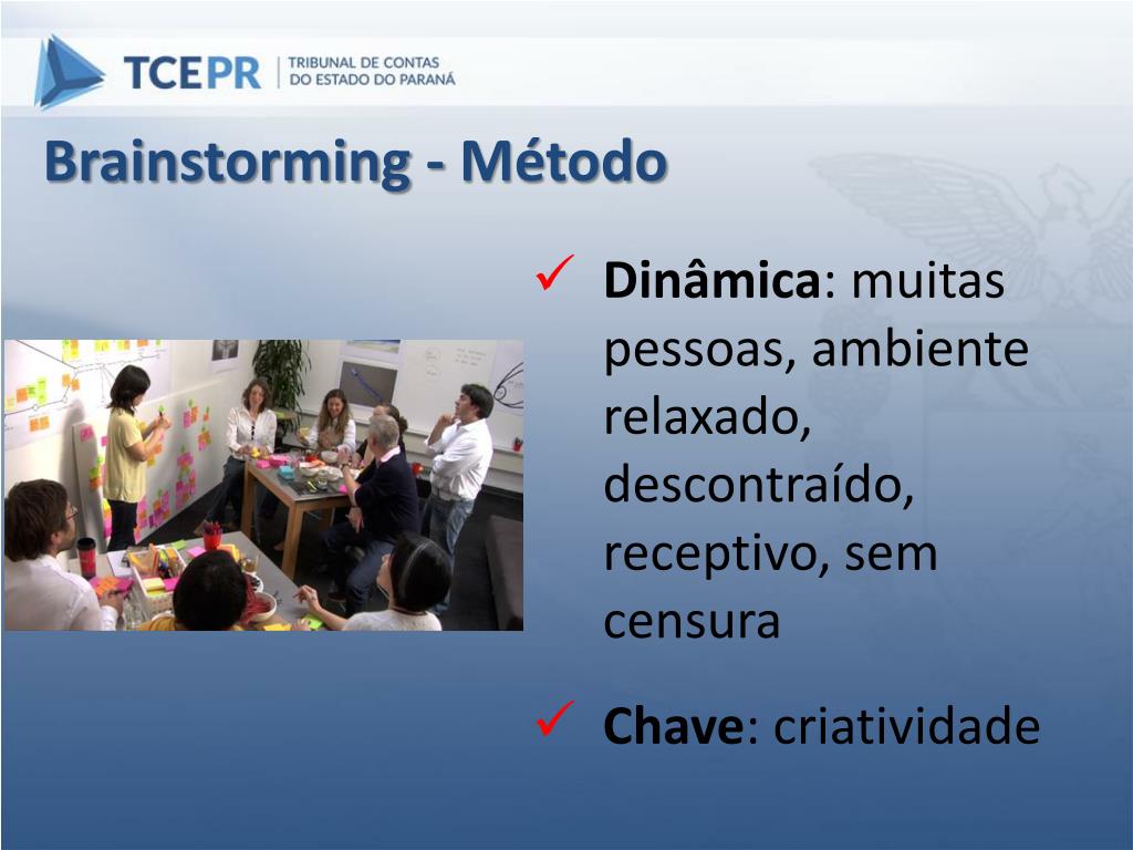 Brainstorming – Utilização da Técnica • Quando não há clareza sobre o tema; • Para jogar focos de luz sobre o tema e depois escolher o melhor ângulo;