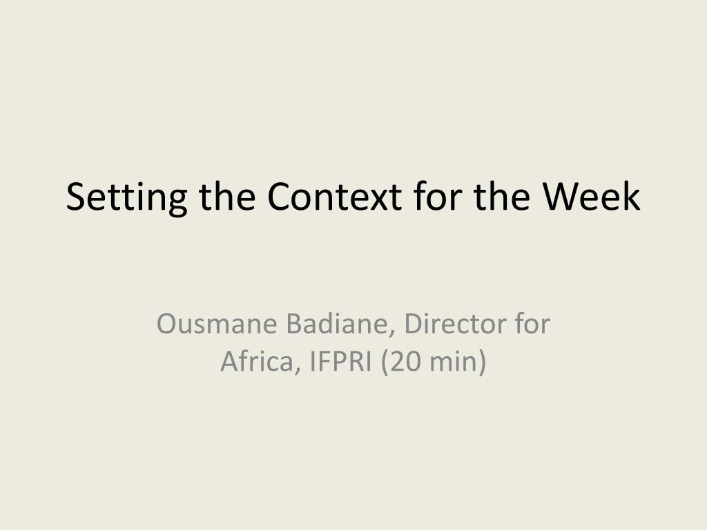 Setting the Context for the Week Ousmane Badiane, Director for Africa, IFPRI (20 min)