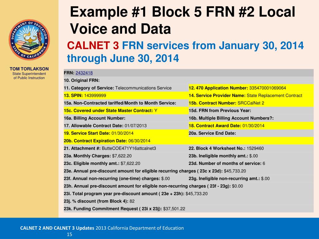 Example #1 Block 5 FRN #4 Long Distance CALNET 3 FRN services from January 30, 2014 through June 30, 2014
