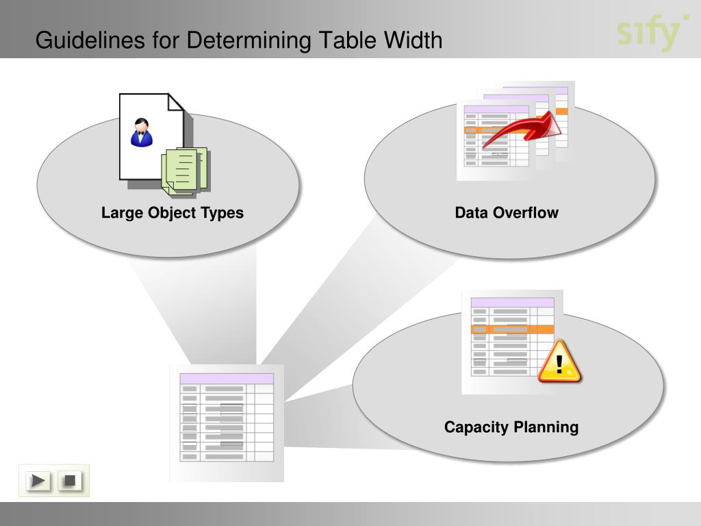 Guidelines for Determining Table Width Large Object Types Data Overflow Capacity Planning