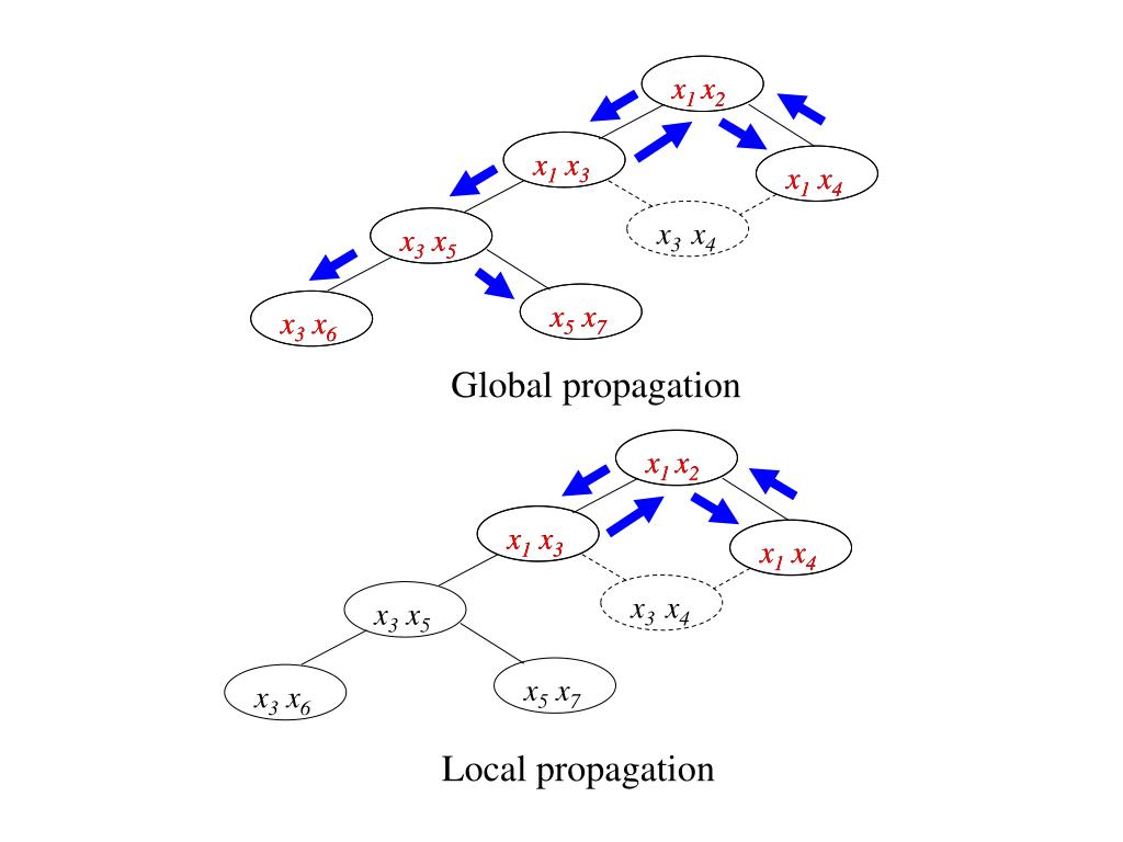 x5 x7 x1 x2 x1 x2 x5 x7 x1 x2 x1 x2 x5 x7 x1 x4 x3 x5 x1 x3 x1 x4 x3 x5 x3 x6 x1 x3 x3 x6 x1 x3 x1 x3 x1 x4 x3 x5 x3 x6 x1 x4 x3 x4 x3 x4 Global propagation Local propagation