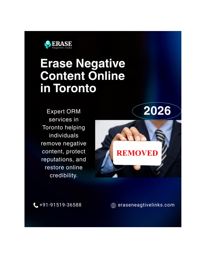 <br>Negative search results can quietly damage careers and personal credibility. This PDF explains how individuals in Toronto can erase or suppress harmful online content through expert ORM services. Learn about personal reputation cleanup, removal strategies for Google, Glassdoor, Trustpilot, and Yelp, and how a structured audit-to-monitoring process helps restore control over your online identity. Ideal for professionals, executives, and individuals seeking long-term reputation protection.