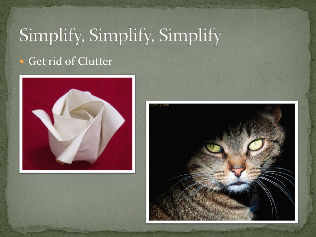 Simplify, Simplify, Simplify • Get rid of Clutter
