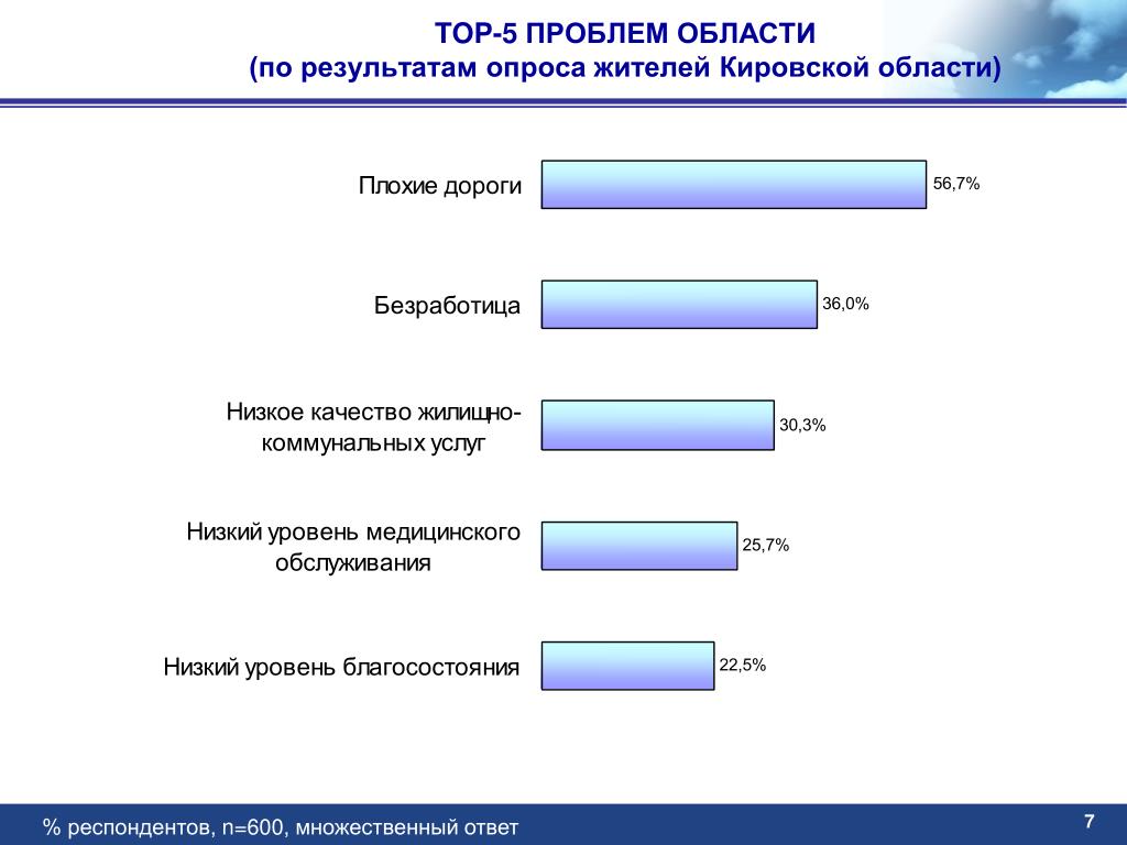 TOP-5 ПРОБЛЕМ ОБЛАСТИ(по результатам опроса жителей Кировской области) % респондентов, n=600, множественный ответ