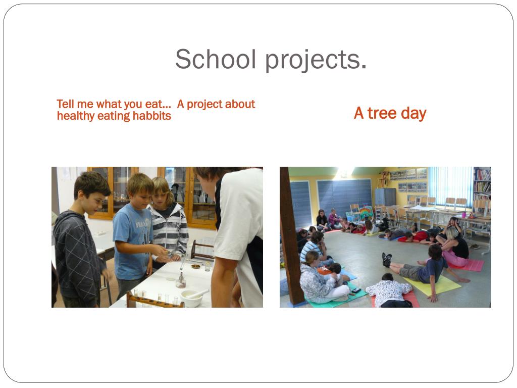 School projects. Tell mewhatyoueat… A projectabouthealthyeatinghabbits A treeday