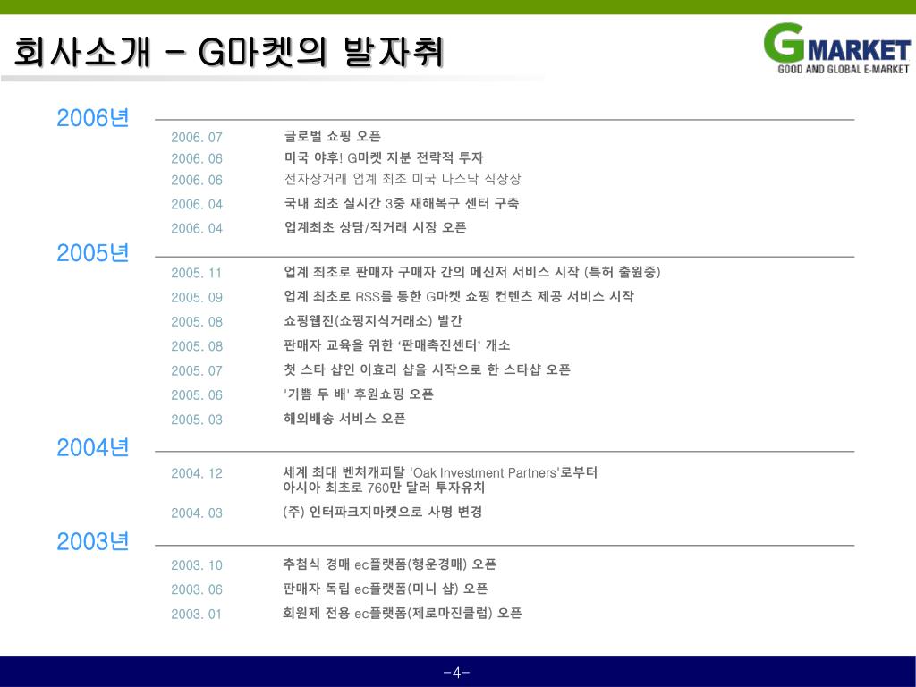 회사소개 - G마켓의 발자취 2006년 2005년 2004년 2003년