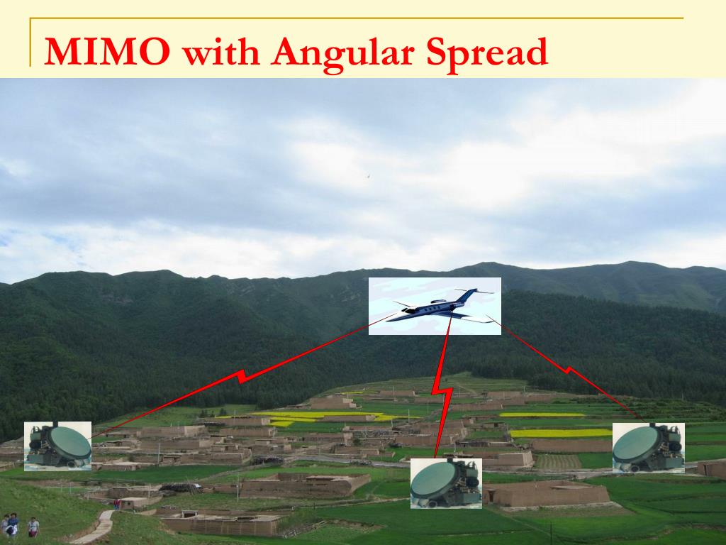 MIMO with Angular Diversity Angular spread- a measure of the variability of the signals received across the array. A high angular spread implies low correlation between target backscatter • MIMO mode: • Exploit angular spread • Orthogonal waveforms