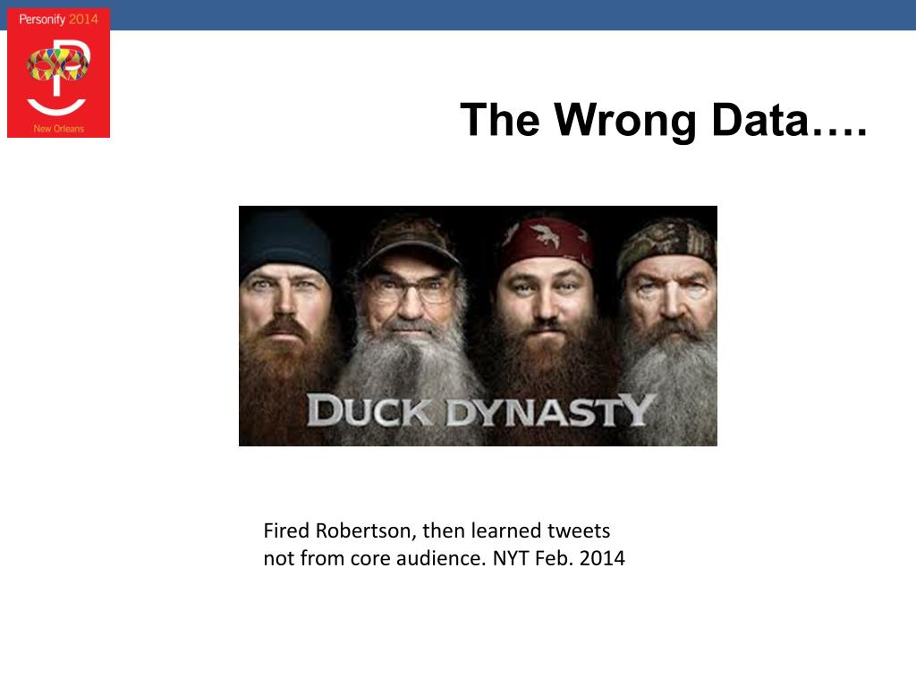 The Wrong Data…. Fired Robertson, then learned tweets not from core audience. NYT Feb. 2014