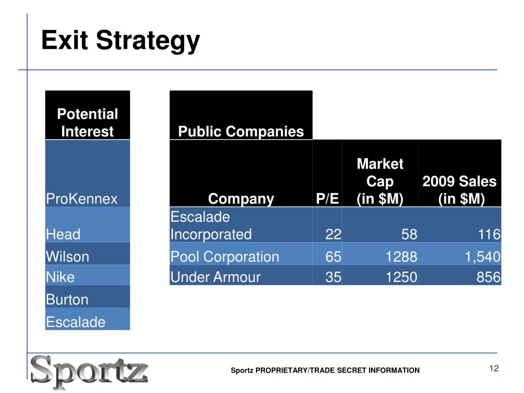 IP / Entry Barriers No Existing Patents Apply for utility patent Build our trademark of Sportz brand