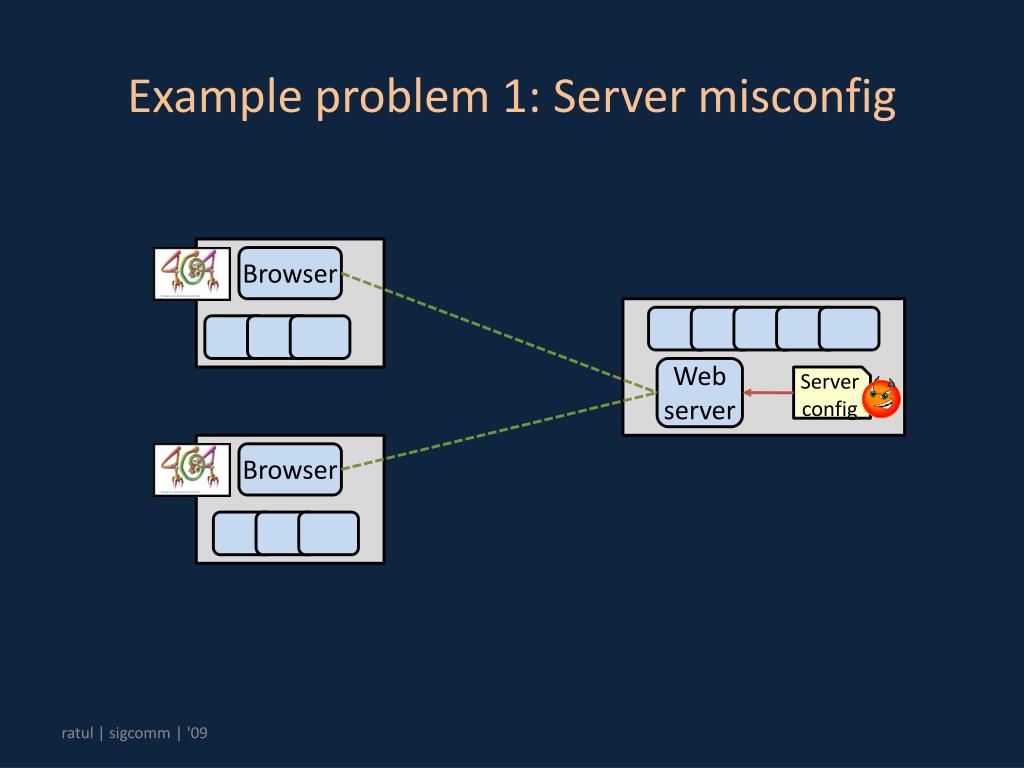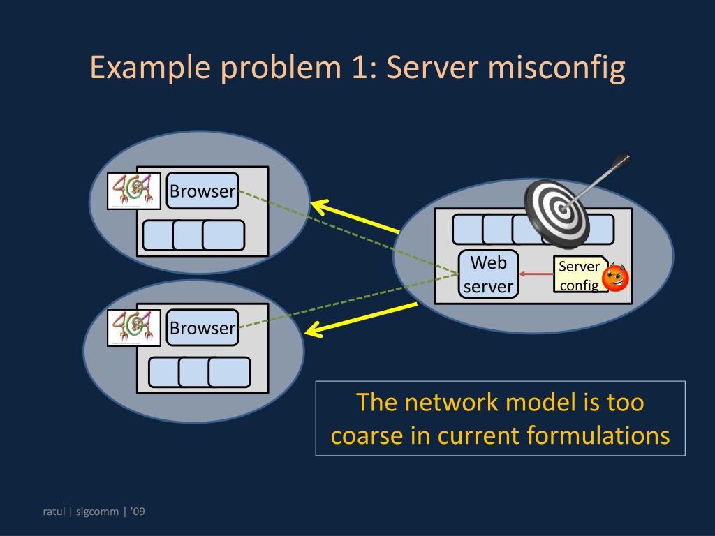 Example problem 1: Server misconfig Browser Web server Server config Browser The network model is too coarse in current formulations