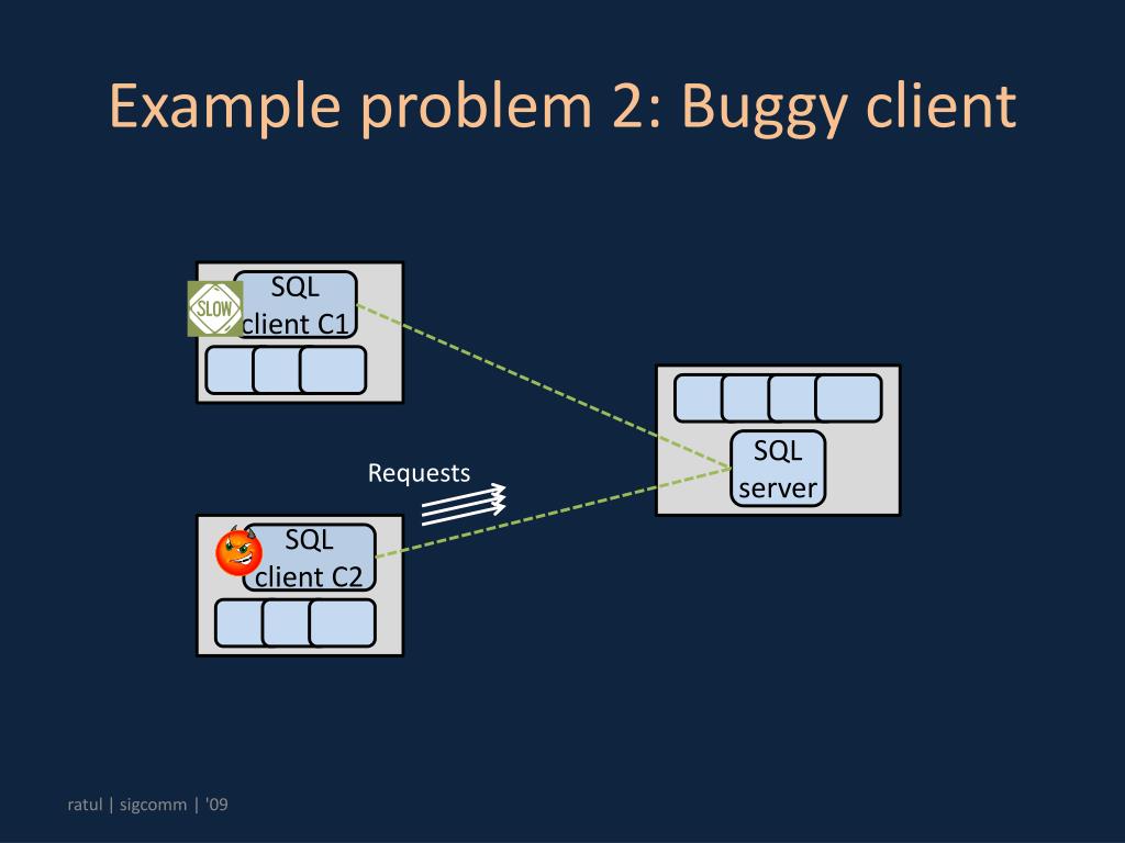 Example problem 2: Buggy client SQL client C1 SQL server Requests SQL client C2