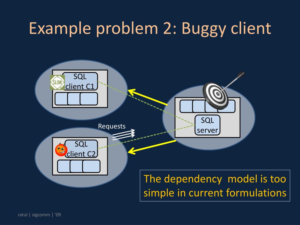 Example problem 2: Buggy client SQL client C1 SQL server Requests SQL client C2 The dependency model is too simple in current formulations