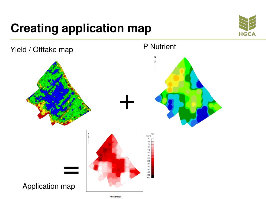Creating application map P Nutrient Yield / Offtake map + = ? Application map