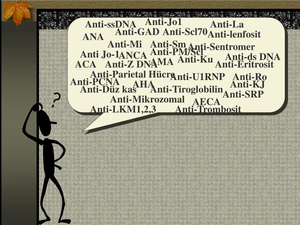 Anti-Jo1 Anti-ssDNA Anti-La Anti-GAD Anti-Scl70 Anti-lenfosit ANA Anti-Mi Anti-Sm Anti-Sentromer Anti-PM/Scl Anti Jo-1 ANCA Anti-ds DNA Anti-Ku AMA ACA Anti-Z DNA Anti-Eritrosit Anti-Parietal Hücre Anti-U1RNP Anti-Ro Anti-PCNA AHA Anti-KJ Anti-Düz kas Anti-Tiroglobilin Anti-SRP Anti-Mikrozomal AECA Anti-LKM1,2,3 Anti-Trombosit