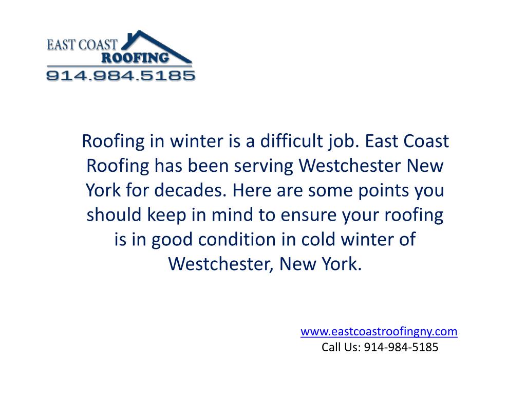Roofing in Winter in Westchester New York. Roofing in winter is a difficult job. East Coast Roofing has been serving Westchester New York for decades. Here are some points you should keep in mind to ensure your roofing is in good condition in cold winter of Westchester, New York. .