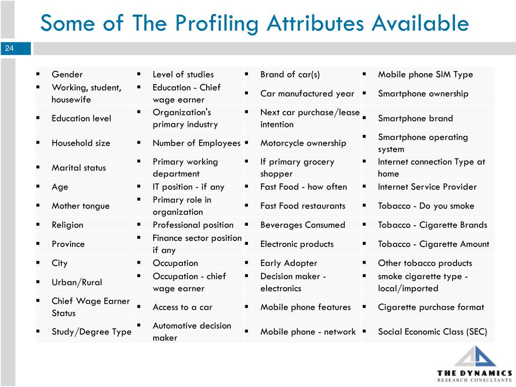 Information Gathering Techniques • The Dynamics – Research Consultantsuse the following techniques to collect the desired information for the research studies they handle: • Secondary / Desk Research • Personal Observation • Mystery Shopping • Focus Group discussions • Depth interviews • Face-to-face, paper and pen interviews [F2F PAPI] • Telephone interviews • Mail / self-administered questionnaires • Computer aided personal interviews [CAPI] • Computer aided telephone interviews [CATI] • Central location test [CLT] • Home usage test [HUT] • Internet – Online Research Panel • Mobile based Data Collection Solution