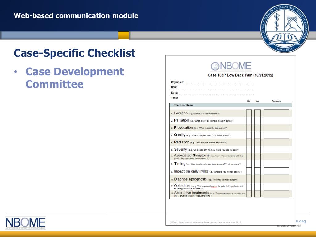 Web-based communication module Case-Specific Checklist • Case Development Committee