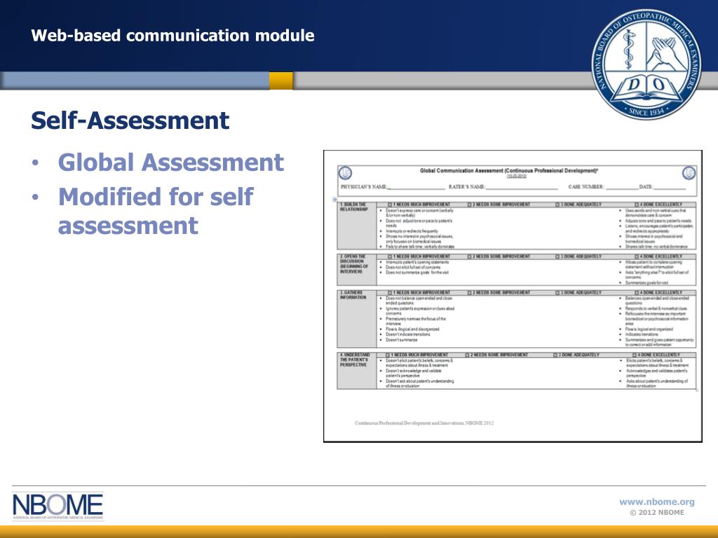Web-based communication module Self-Assessment • Global Assessment • Modified for self assessment