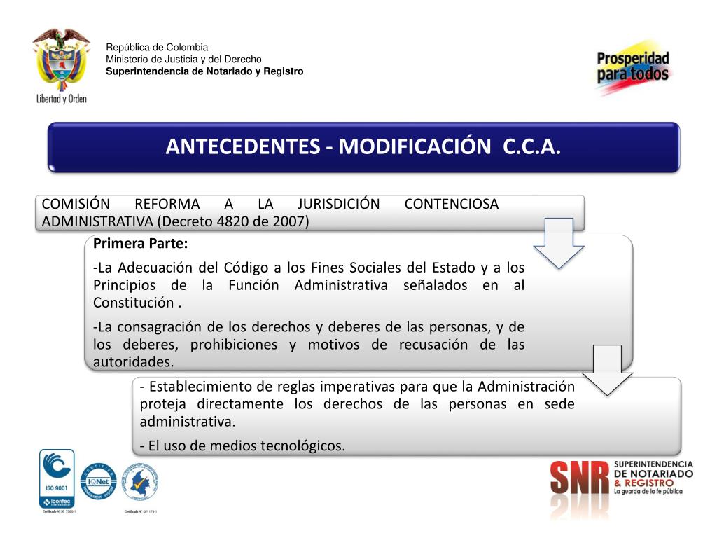 República de Colombia Ministerio de Justicia y del Derecho Superintendencia de Notariado y Registro. LEY 1437 DE ENERO 18 DE 2011 CÓDIGO DE PROCEDIMIENTO ADMINISTRATIVO Y DE LO CONTENCIOSO ADMINISTRATIVO Dra. Janeth Cecilia Díaz Cervantes Oficina Asesora Jurídica. República de Colombia