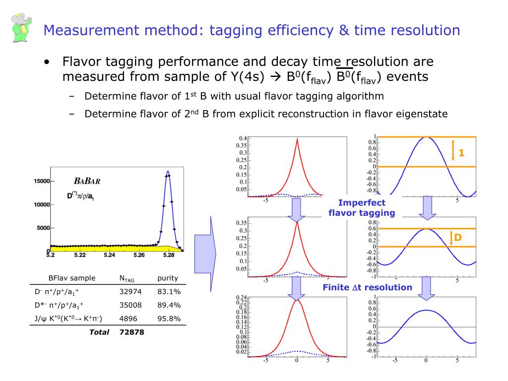 Flavor tagging Determine flavor of Btag BCP(Dt=0)from partial decay products Leptons : Cleanest tag. Correct >95% Full tagging algorithm combines all in neural network Four categories based on particle content and NN output. Tagging performance e- e+ W- W+ n n b b c c Kaons : Second best. Correct 80-90% efficiency mistake rate W- W+ c c K- s s b K+ b W- u u Q = 30.5% W+ d d Wouter Verkerke, NIKHEF