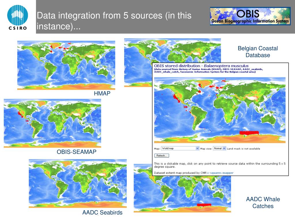 Belgian Coastal Database • HMAP • OBIS-SEAMAP • AADC Whale Catches • AADC Seabirds Data integration from 5 sources (in this instance)... OBIS Overview – February 2005