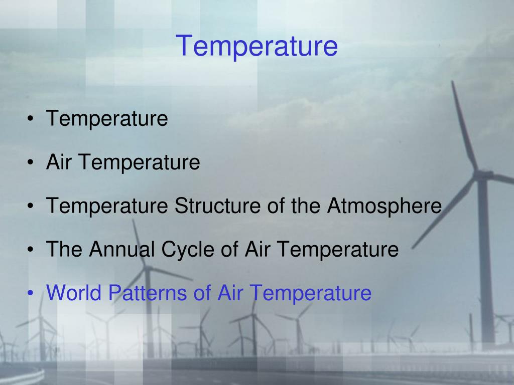 Temperature • Temperature • Air Temperature • Temperature Structure of the Atmosphere • The Annual Cycle of Air Temperature • World Patterns of Air Temperature
