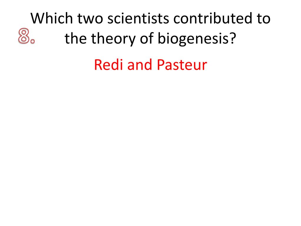 Which two scientists contributed to the theory of biogenesis? 8. Redi and Pasteur